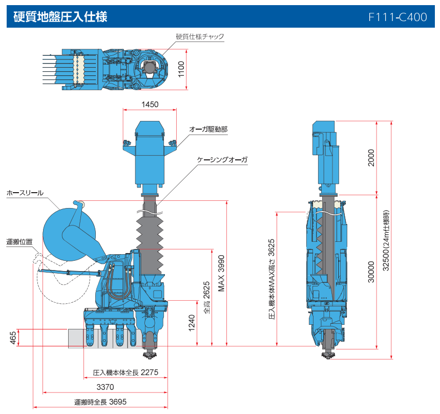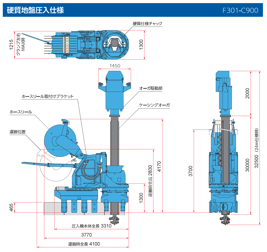 硬質地盤対応油圧式 圧入力800kN級 引抜力900kN級として分類されています。