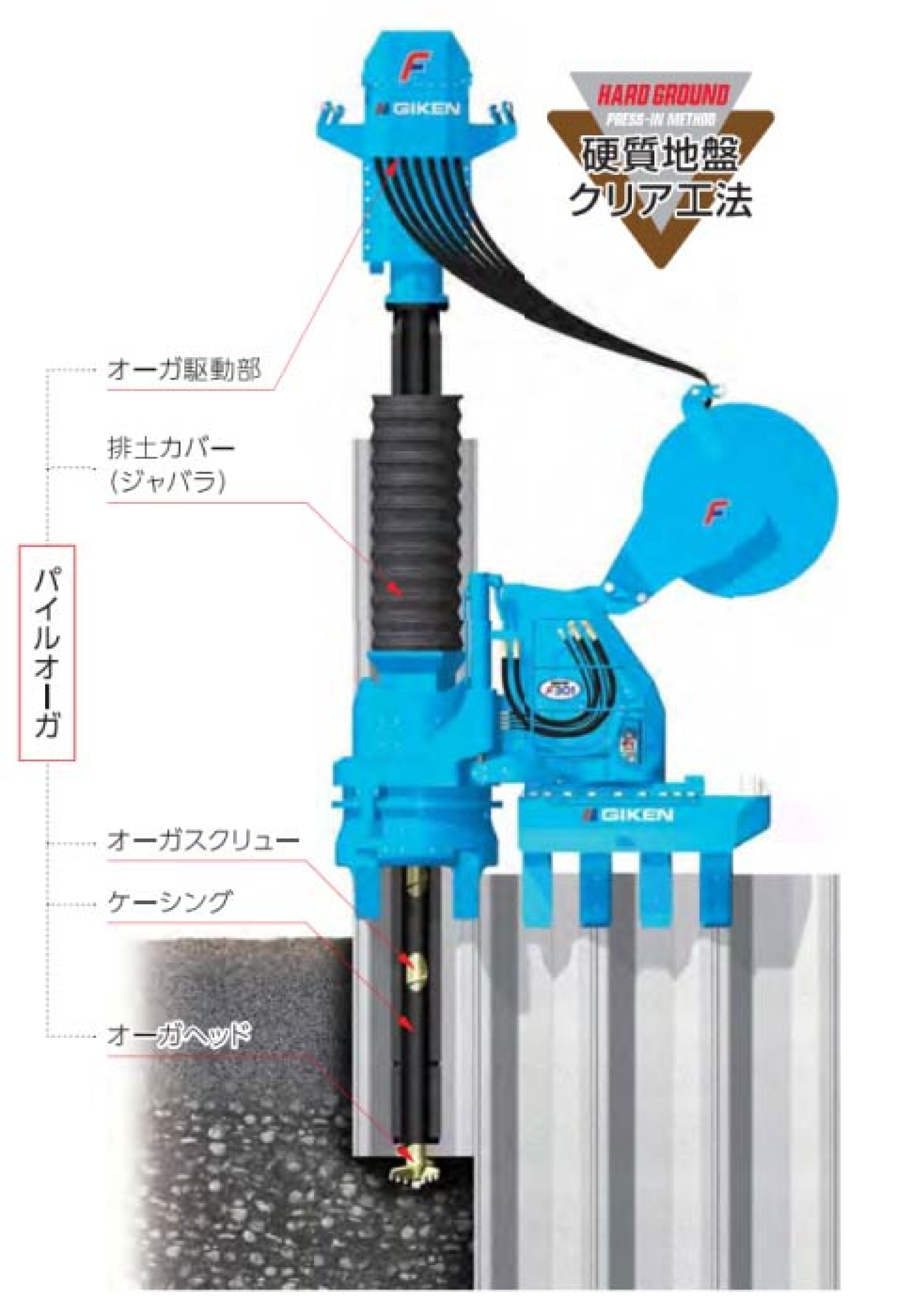 圧入とオーガ掘削を連動させた『芯抜き理論』により、圧入の優位性を損なうことなく、硬質地盤への圧入を実現しました。