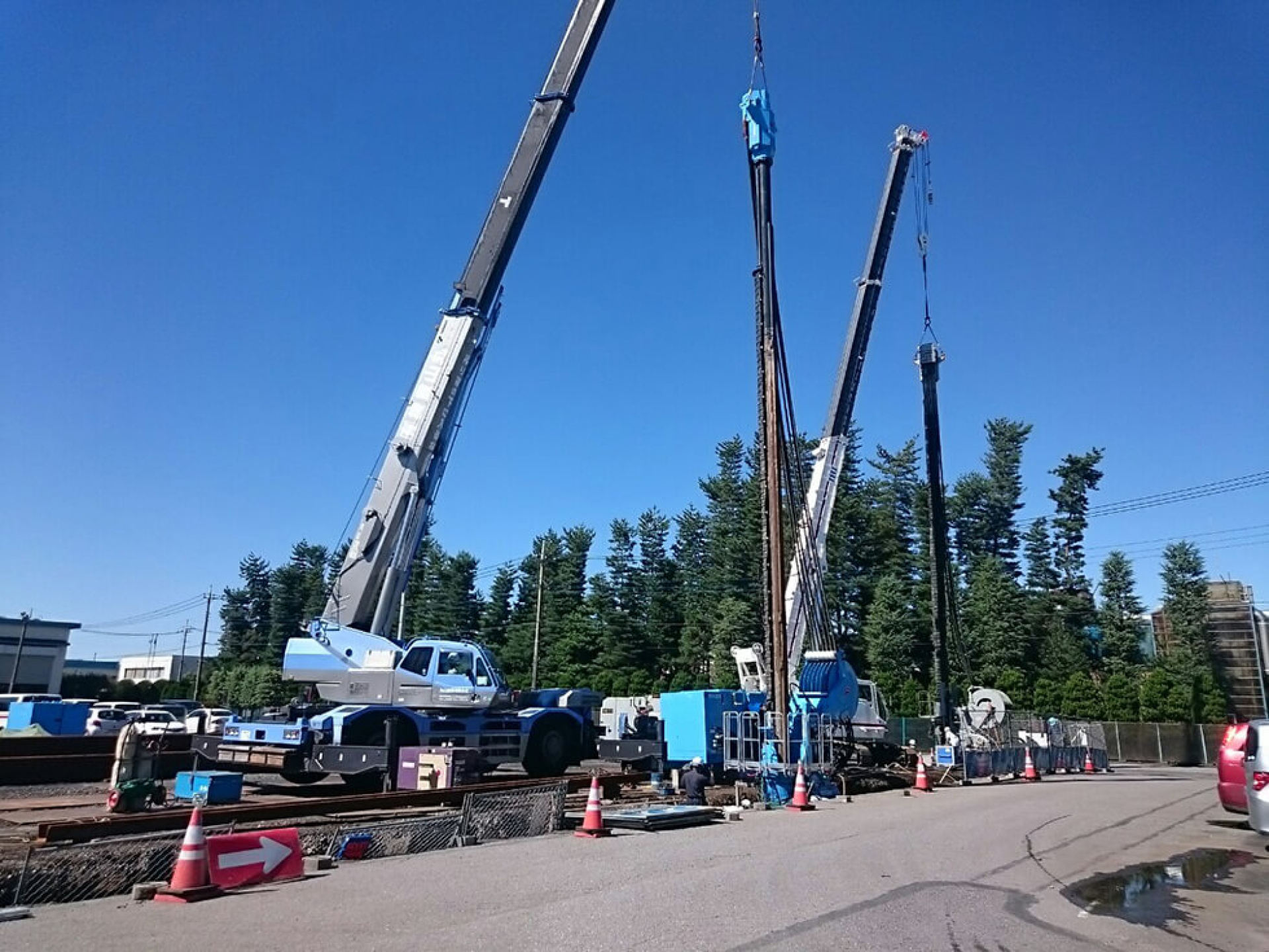市庁舎に密接した環境で、且つ、施工日限定での工期厳守の工事となりましたが、クラッシュパイラーの静音性により、庁舎内で仕事をされていた方はもとより、庁舎を利用されたお客様からの苦情もなく、上位会社様のご協力のもと無事施工完了しました。