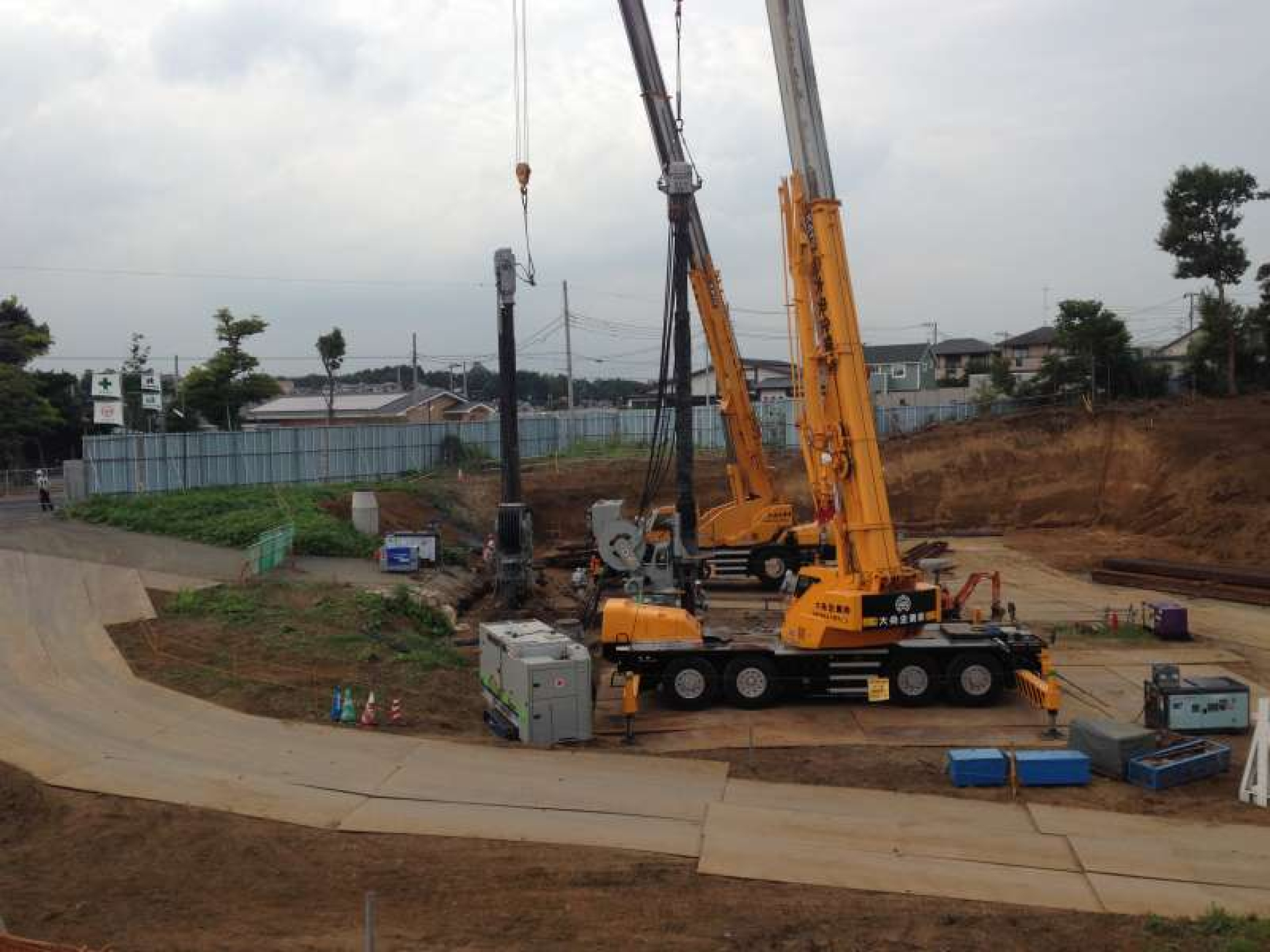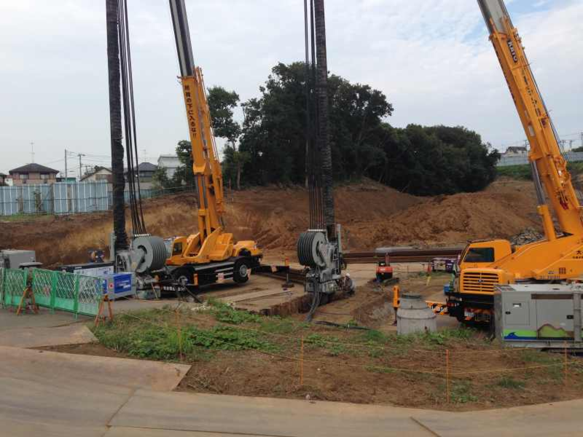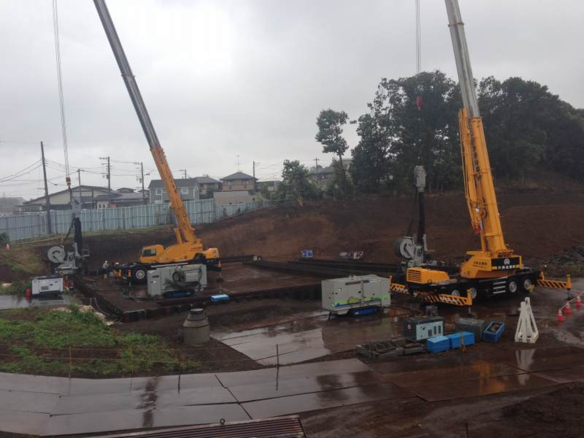 工期短縮のために二台同時施工をしました。鋼矢板同士を最終締め切りするために正確な施工をし、施工期間・品質共にご要望に答えるよう施工しました。